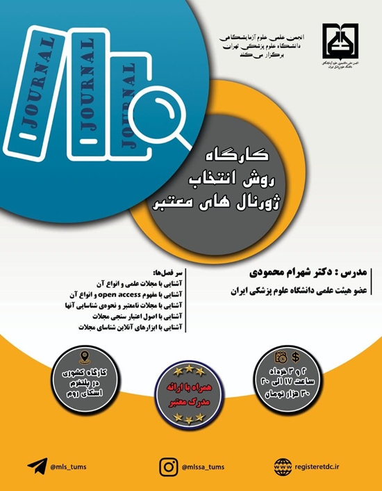 کارگاه پژوهشیِ “روش انتخاب ژورنال‌های معتبر” توسط انجمن علوم آزمایشگاهی دانشگاه علوم پزشکی تهران ۲ و ۳ خرداد ماه برگزار می‌شود.