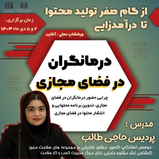 ���� ورکشاپ عملی/آنلاین ���� از گام صفر تولید محتوا تا درآمدزایی ���� چرایی حضور درمانگران در فضای مجازی ���� بلاگری یا کسب و کار ���� تدوین برنامه محتوایی ���� انتشار محتوا در فضای مجازی
