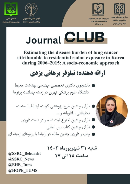 واحد بهداشت مرکز پژوهش های علمی دانشجویان دانشگاه علوم پزشکی تهران با همکاری انجمن علمی دانشجویی مهندسی بهداشت محیط و بهداشت عمومی (HOPE) دانشگاه علوم پزشکی تهران برگزار میکند: