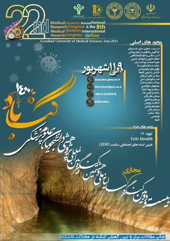 بیست و دومین کنگره سالیانه ملی پژوهشی دانشجویان علوم پزشکی سراسر کشور و هشتمین کنگره بین المللی به میزبانی دانشگاه علوم پزشکی گناباد بصورت مجازی برگزار میشود.