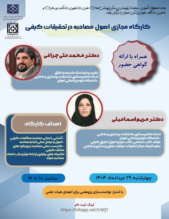 واحد تحصیلات تکمیلی، معاونت پژوهشی و واحد پرستاری و مامایی مرکز پژوهش‌های علمی و فناوری دانشجویان علوم پزشکی تهران  برگزار می‌کنند:
