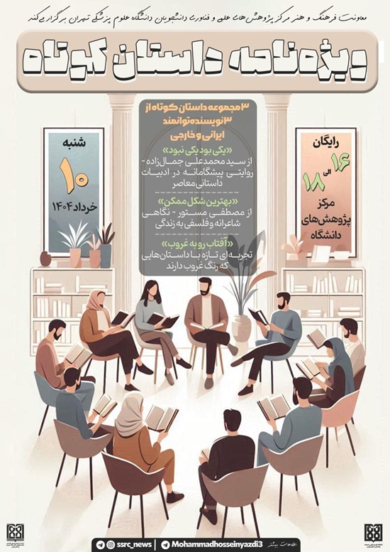 معاونت فرهنگ و هنر مرکز پژوهشهای علمی و فناوری دانشجویان دانشگاه علوم پزشکی تهران برگزار میکند: