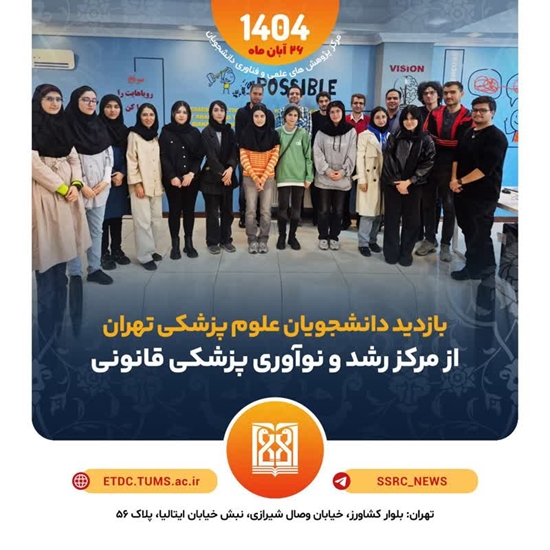 به گزارش معاونت پژوهشی مرکز پژوهشهای علمی و فناوری دانشجویان دانشگاه علومپزشکی تهران طبق برنامه اعلام شده روز سهشنبه مورخ ۲۶ آبان ۱۴۰۴ جمعی از دانشجویان علاقهمند از رشتههای مختلف، بهمنظور آشنایی با توانمندیها و فعالیتهای فناورانه حوزه پزشکی قانونی، در قالب یک تور پژوهشی از مرکز رشد و نوآوری پزشکی قانونی بازدید کردند. در این برنامه، دانشجویان علاوه بر آشنایی با بخشهای مختلف مرکز رشد، از تیم های مستقر در این مرکز بازدید کرده و از توضیحات کارشناسان و فرایندهای نوآورانه مجموعه بهرهمند شدند.