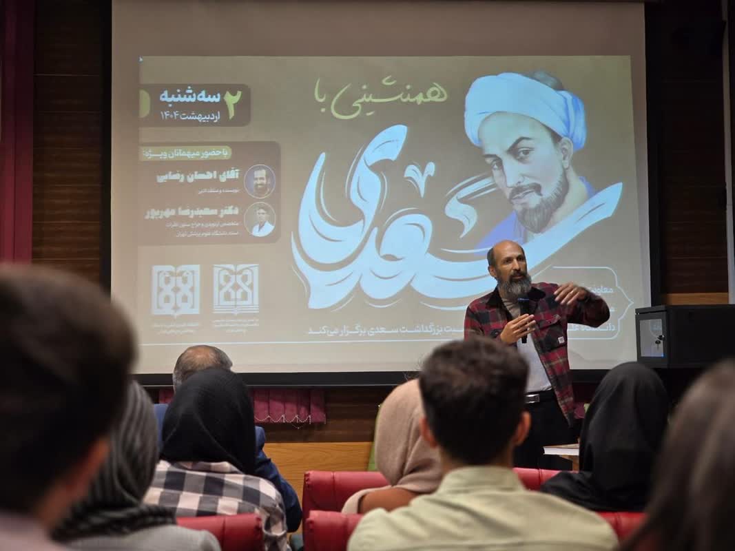 «هم‌نشینی با سعدی»، عنوان برنامه‌ای بود که با استقبال پرشور دانشجویان و علاقه‌مندان به ادبیات فارسی برگزار شد؛ نشستی صمیمی و اندیشمندانه که به بزرگداشت اندیشه‌های سعدی شیرازی، شاعر خرد و انسان‌دوستی اختصاص داشت.