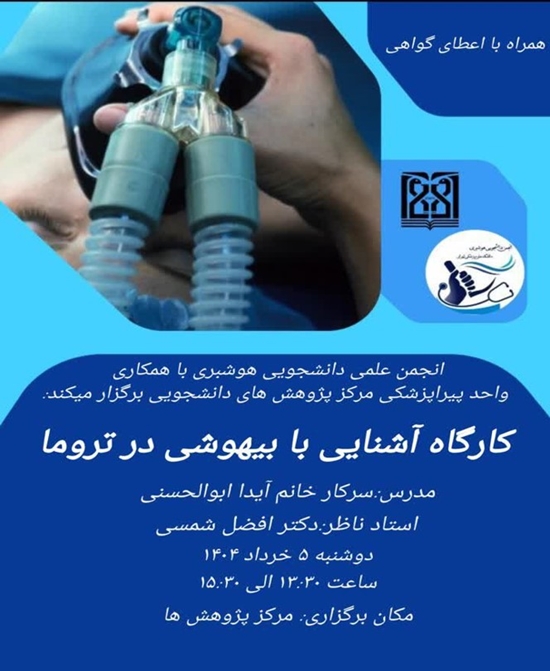 کارگاه آشنایی با بیهوشی در تروما واحد دانشکده پیراپزشکی مرکز پژوهش های علمی و فناوری دانشجویان برگزار می کند: کارگاه آشنایی با بیهوشی در تروما مدرس: آیدا ابوالحسنی زمان برگزاری: 5 خرداد کد خبر : 305693 کپی کلمات کلیدی